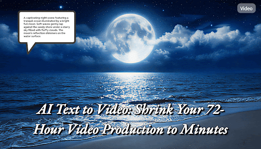 Simply put, AI Text to Video is a type of generative artificial intelligence that can understand text input (known as a “prompt” or “script”) and automatically transform it into a series of dynamic video scenes. It functions like a 24/7 AI-powered mini-production team that can immediately execute first jobs for directors, cinematographers, art designers, and editors.