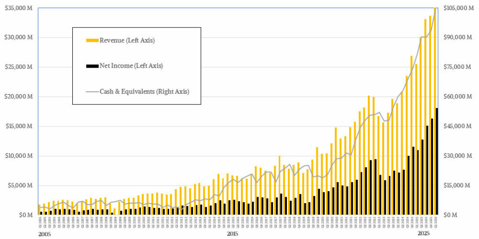 Adding up all those wafers and packages, TSMC posted sales of $35.9 billion in the March quarter, up 40.6% year over year, and net profit exploded 65.2% to $18.13 billion, accounting for 50.5% of revenue. TSMC is a capital-intensive and highly complex hardware maker with profit margins comparable to any software stack in history, including the venerable IBM mainframe, which remains afloat thanks to the tenacity of applications written over decades on System/360 and its successors.