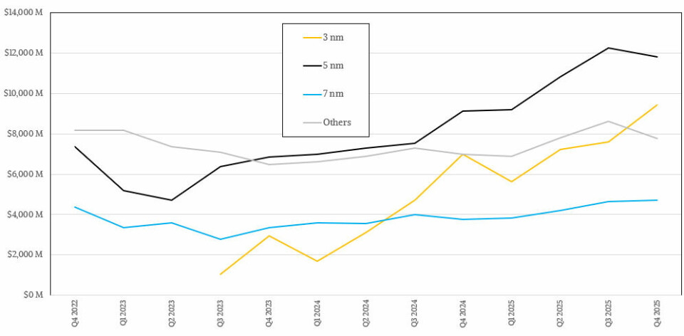 The N3 node, which is several years younger, is here to stay, with revenue of just under $9 billion in Q1 2026, up 59.8% but down 5% sequentially. The much older N7 node (which also includes the N6 variant) is still not only doing well but growing, with sales increasing 21.9% to $4.67 billion. Sales for all other nodes (and many older nodes manufactured around the world) were $9.33 billion, up 35.4% in the March quarter. This kind of revenue is why the old Intel foundry model has moved away over the years. This is because Intel has leading edge captive customers and is not a merchant foundry. Intel would kill for a legacy business like that, and may even build one someday.