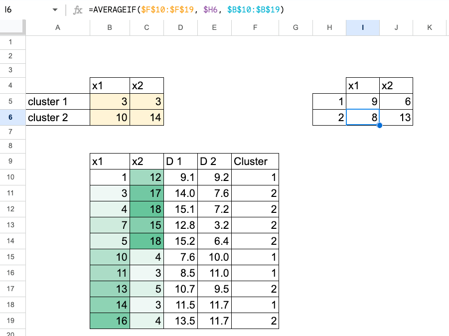 Formulas in Excel make it easy to: Paste the new centroid value to the initial centroid cell.