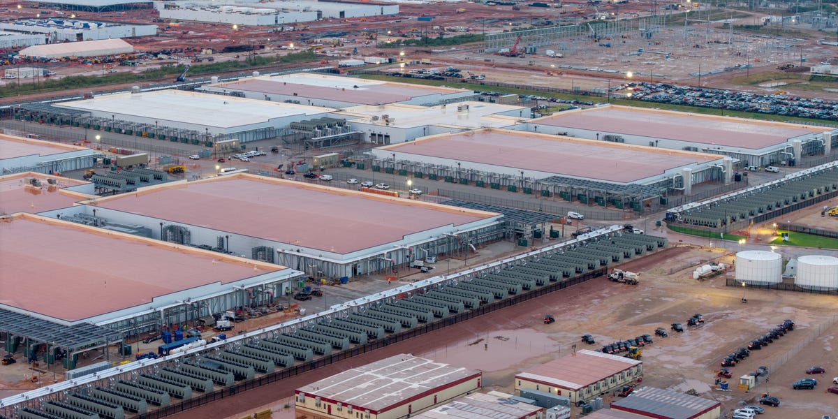 Aerial view of a 33-megawatt data center with a closed-loop cooling system in Vernon, California, on October 20, 2025. The surge in demand for AI infrastructure is fueling a boom in data centers across the country and around the world. Mario Tama/Getty Images